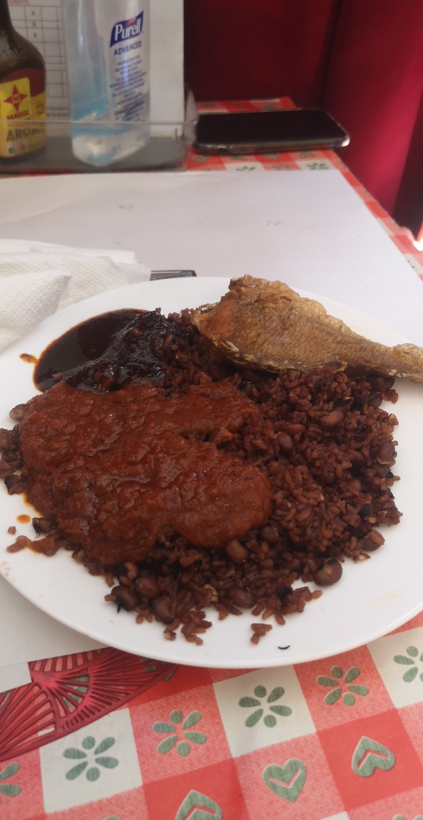 Posté le 16/03/2022 à 14:33"Ma femme et moi avons mangé au restaurant Ahenfie. Nous avons très bien mangé. Nous avons même repris un deuxième plat. La sauce était parfaite épicée comme il fallait, le poisson séché juste comme il faut. Le riz et haricots rouges bien cuits. C’est un petit restaurant de quartier nous étions au calme. Je recommande. Nous y retournerons sans hésitation."